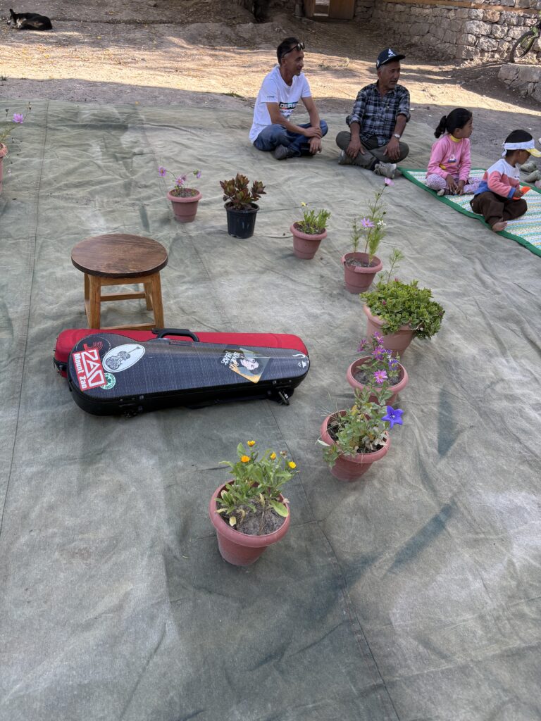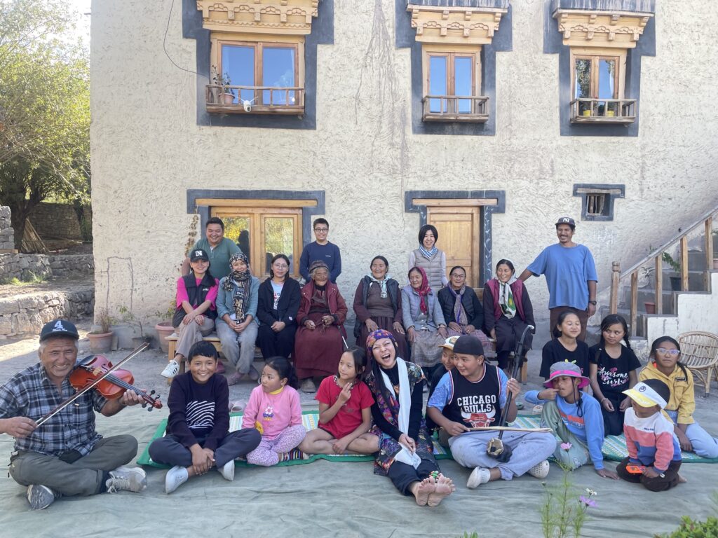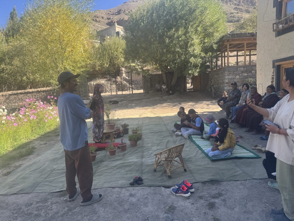 主催下さった、ストック村のニャムシャンハウス、ワンボさんとえつこさんが説明をして下さいながら。